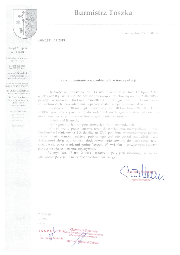 Petycja w sprawie budowy oświetlenia ulicznego na ul. Leśniczówka w Ciochowicach (237,25KB)